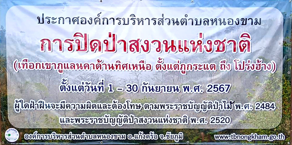 ...องค์การบริหารส่วนตำบลหนองขาม ประกาศการปิดป่าสงวนแห่งชาติ บริเวณเทือกเขาภูแลนคาด้านทิศเหนือ ตั้งแต่ภูกระแตถึงโปร่งฮ้าง