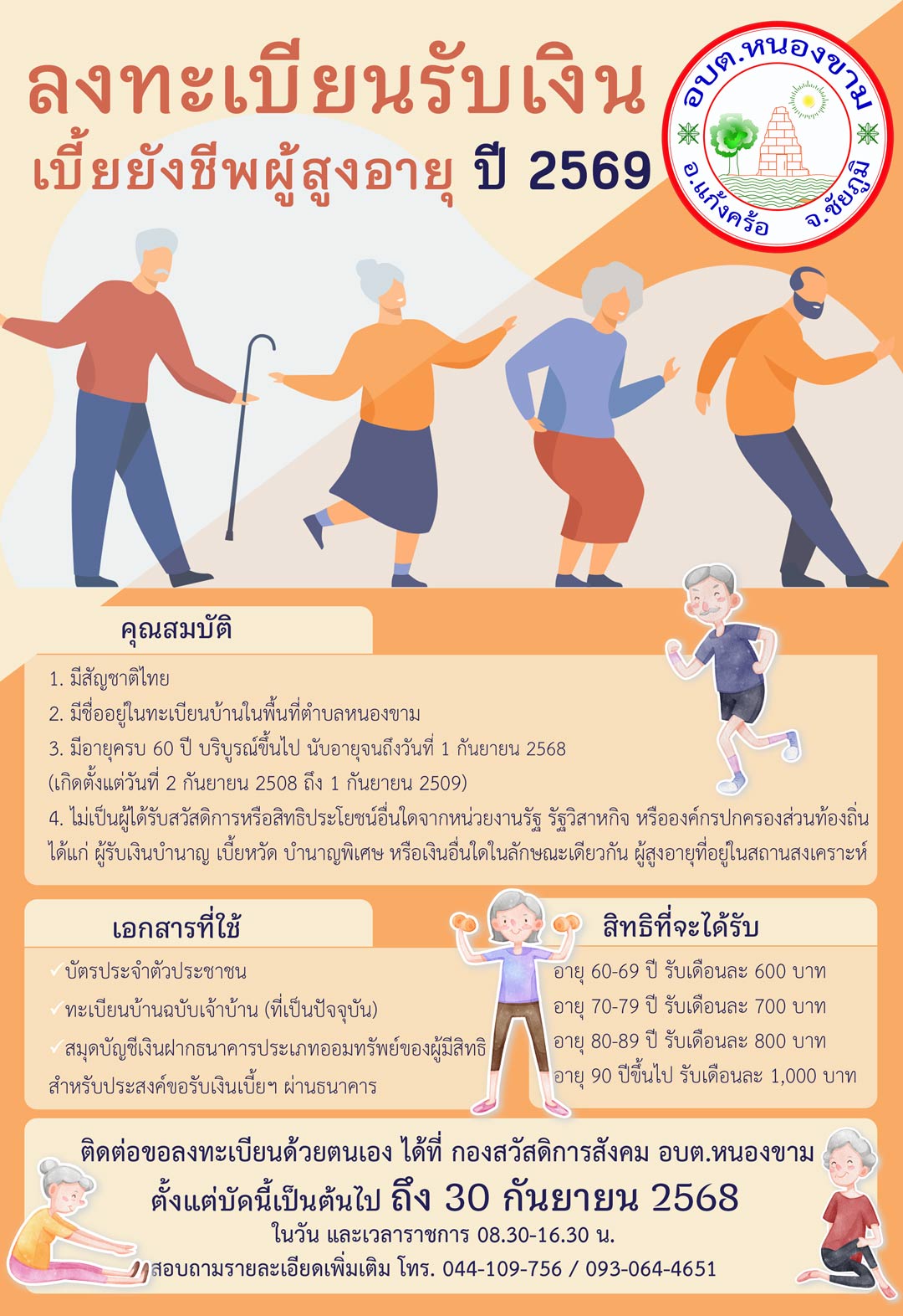 งานด้านสวัสดิการสังคม ข้อมูลสถิติจำนวนผู้สูงอายุ/ผู้พิการ/ผู้มีภาวะพึ่งพิง ในตำบลหนองขาม ประกาศเกี่ยวกับการลงทะเบียนเพื่อรับเบี้ยยังชีพ ประกาศอื่นๆ เกี่ยวกับสวัสดิการสังคม