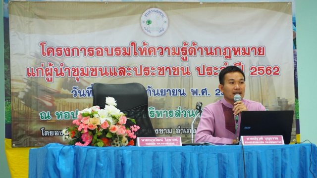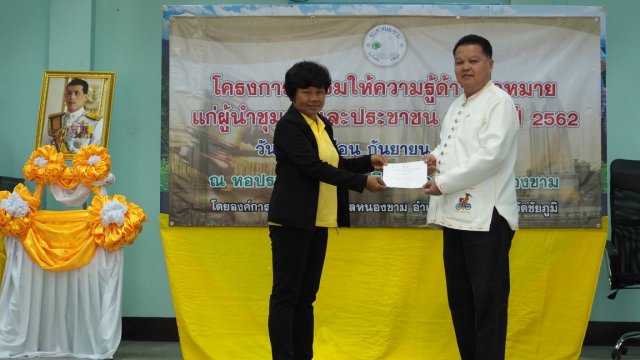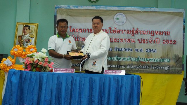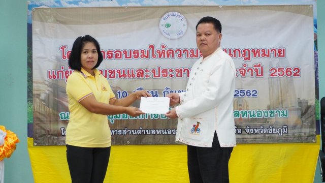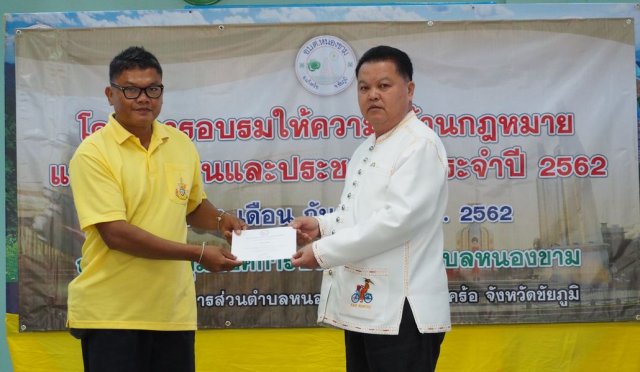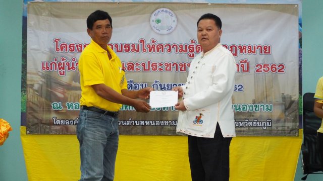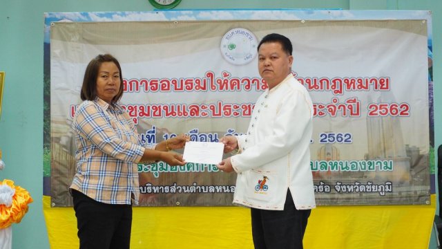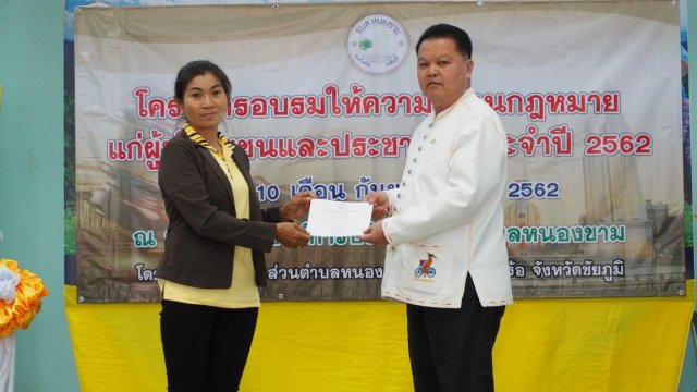 เมื่อวันที่ 10 กันยายน พ.ศ. 2562 องค์การบริหารส่วนตำบลหนองขาม ได้จัดโครงการอบรมให้ความรู้ด้านกฎหมายแก่ผู้นำชุมชนและประชาชน ประจำปี 2562 ณ หอประชุมองค์การบริหารส่วนตำบลหนองขาม เพื่อให้ผู้นำชุมชนและประชาชนทั่วไปรับทราบถึงสิทธิในการรับรู้ข้อมูลข่าวสารของทางราชการ มีความรู้ความเข้าใจในการไกล่เกลี่ยและประนอมข้อพิพาทในชุมชน และส่งเสริมให้ผู้เข้าอบรมมีส่วนร่วมทางการเมืองและการปกครอง และมีส่วนร่วมในการพัฒนาท้องถิ่น